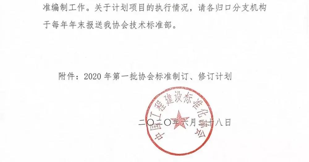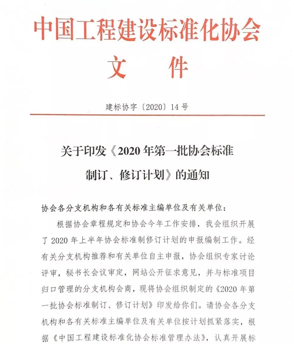 2020年6月28日,中国工程建设标准化协会发布了关于印发《2020年第一批协会标准制订、修订计划》的通知。